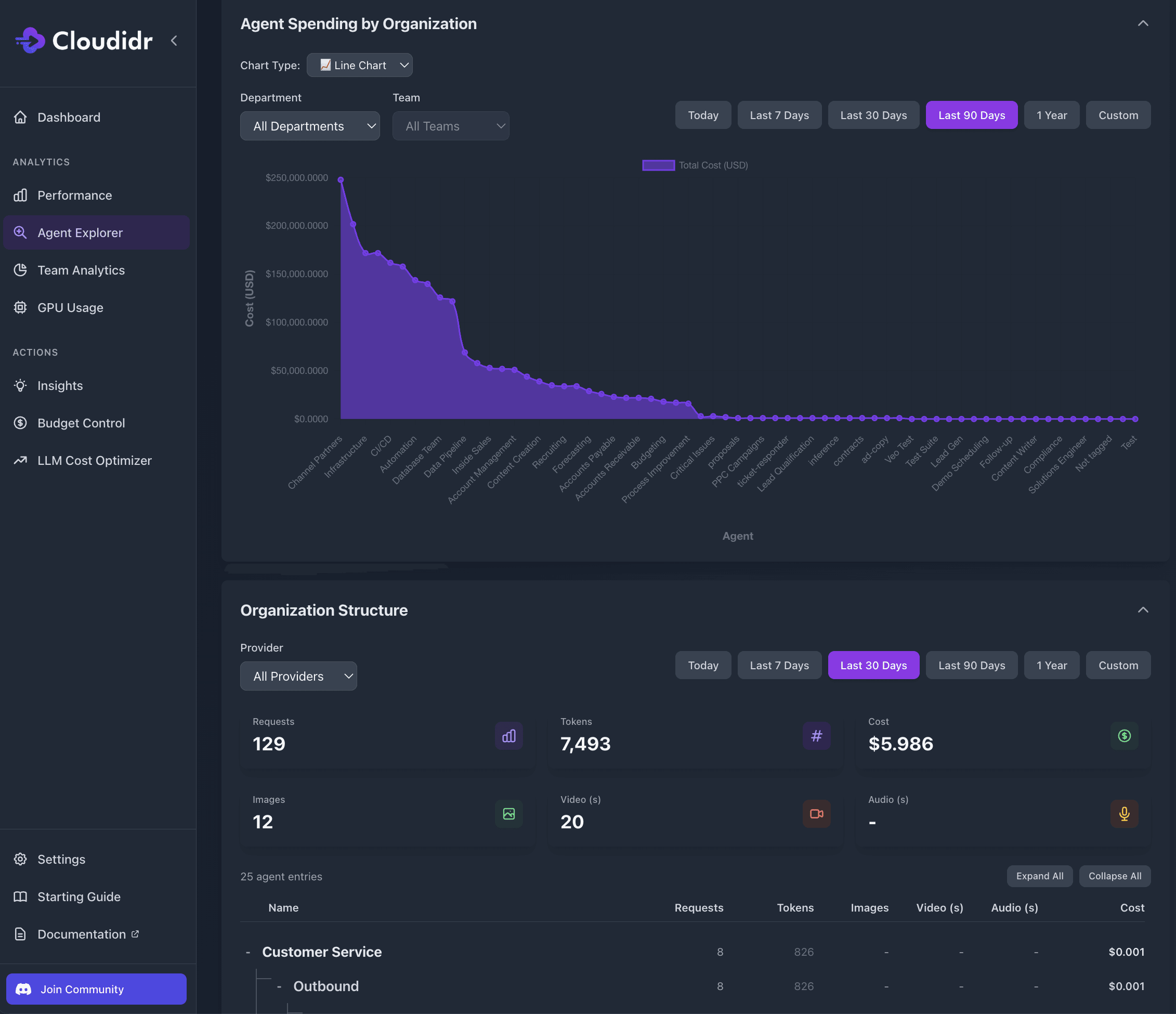 See where your money goes. Track costs by agent or project. Drill down to individual agents.